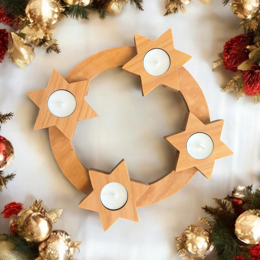 Ručne vyrezávaná dekorácia v podobe Vianočného adventného venca.