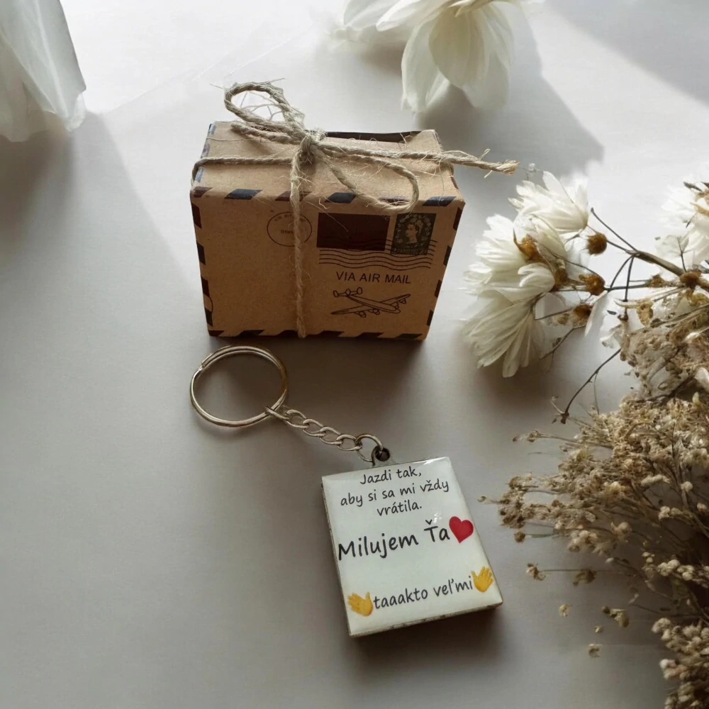 Darčekové balenie "balík" do ktorého je možné zabaliť kľúčenku.