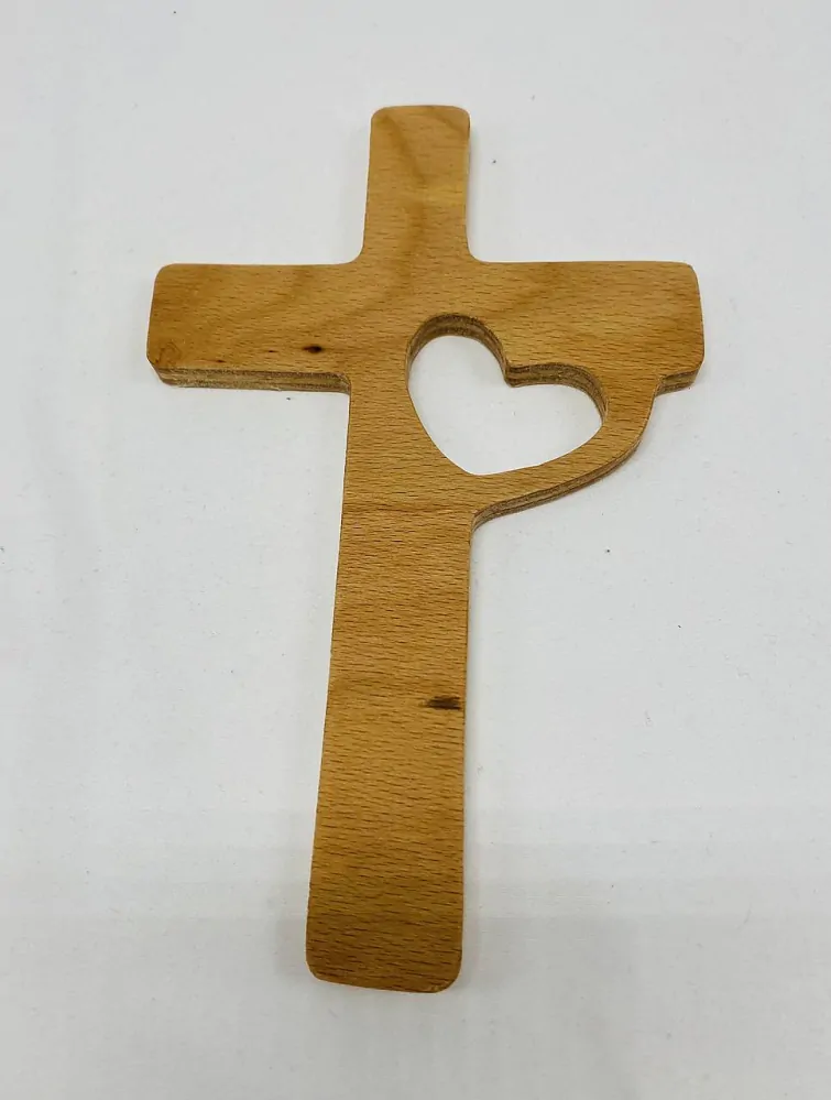 - Drevený krížik so srdiečkom