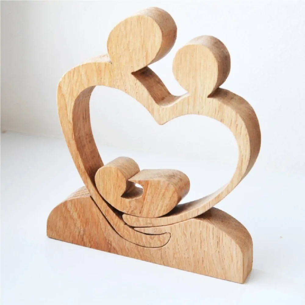 Ručne vyrezávaná dekorácia v podobe otca, matky a dieťaťa.