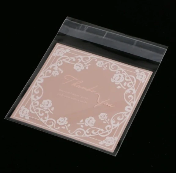 Ružový darčekový sáčok, ktorý je lepiaci s potlačou "Thank you - Because I want to see your face with a smile."
