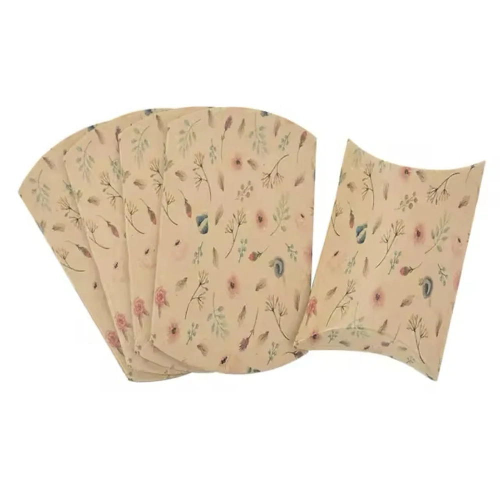 Skladacia papierová darčeková krabička vo prírodom hnedom prevedení s lúčnymi kvetmi.